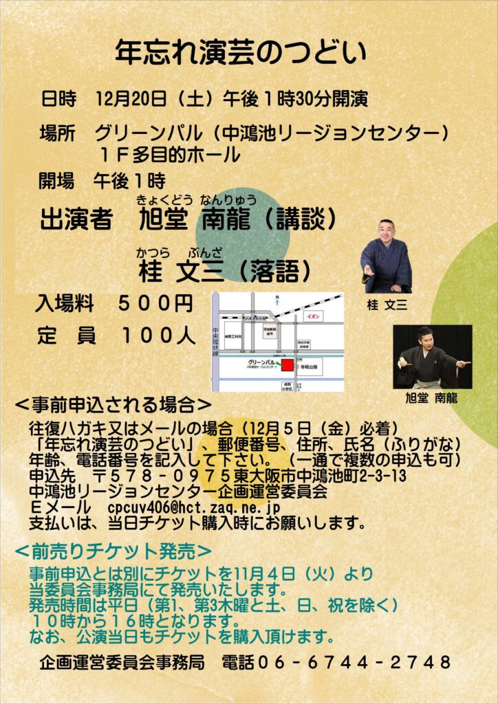 年忘れ演芸のつどい(中鴻池リージョンセンター企画運営委員会)